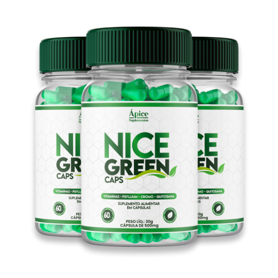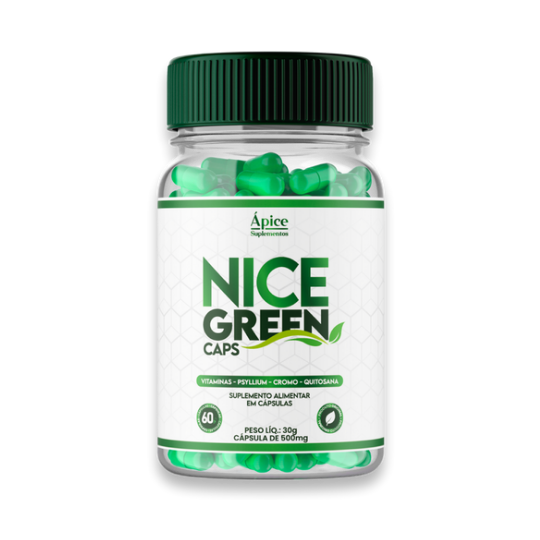 Conheça Nice Green Caps, um suplemento em cápsulas com uma fórmula poderosa que combina os benefícios do Cromo, Psyllium, Quitosana, Espirulina e outras vitaminas essenciais para ajudar você a alcançar seus objetivos de perda de peso.